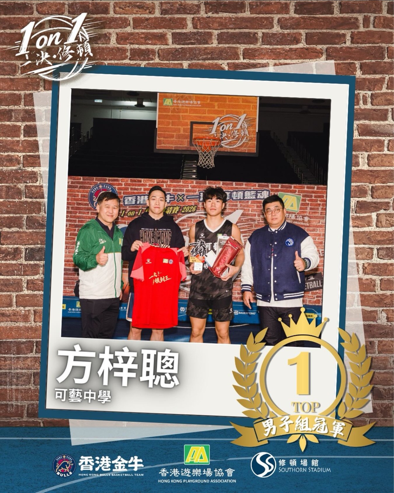 方梓聰參加「香港金牛 x 一決。修頓籃魂」學界1on1籃球邀請賽2026,憑絕佳技術與拼勁,勇奪男子組冠軍。