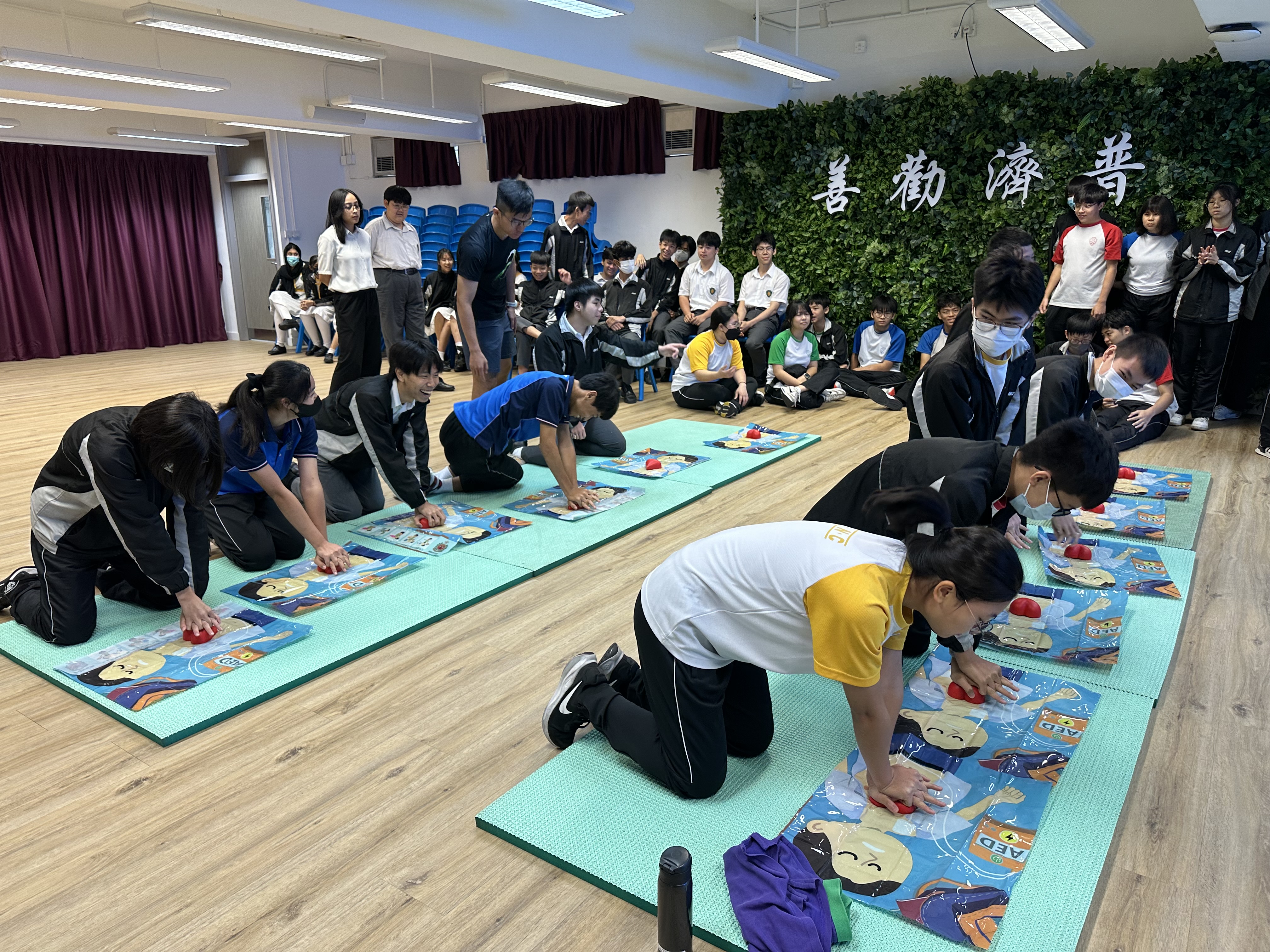 為配合我校校訓,「救急扶危、普濟勸善」精神,好榮幸邀請到香港消防處專業團隊,到校舉辦「AED 睇得到 用得到」計劃,目的是推廣給每一位同學,如遇上緊急事故時盡速使用AED的意識和能力,為身邊人進一步保障生命。