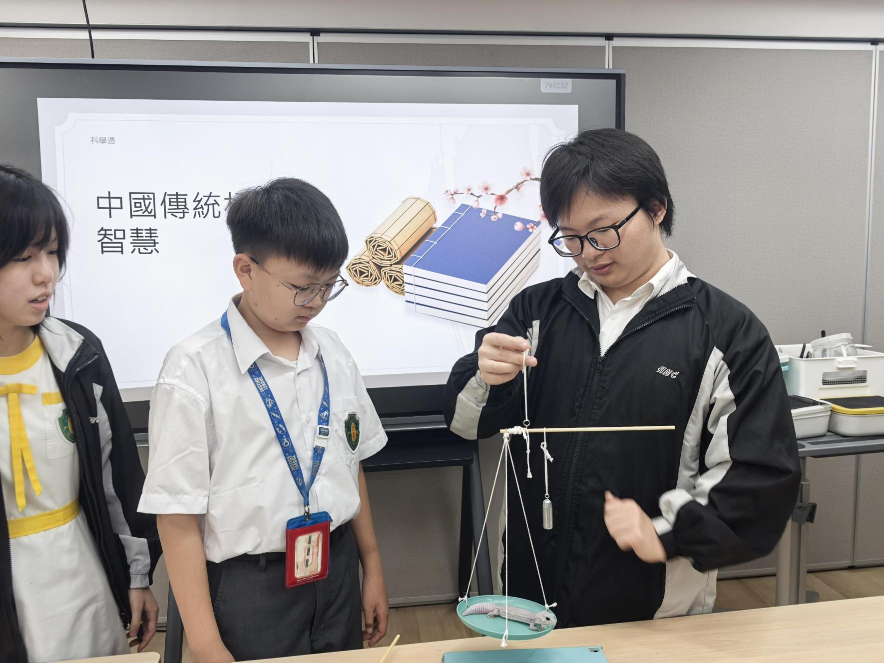 科學週的活動包括生物科「氣侯變化」的桌上遊戲工作坊,以及對中國天災的影響;化學科的電鍍技術與中華文化有著深遠的歷史連結,尤其在傳統工藝中體現古人智慧與現代化學的應用;物理科的中國秤的原理及制作;科學科的寵物展及我最喜愛寵物選舉。