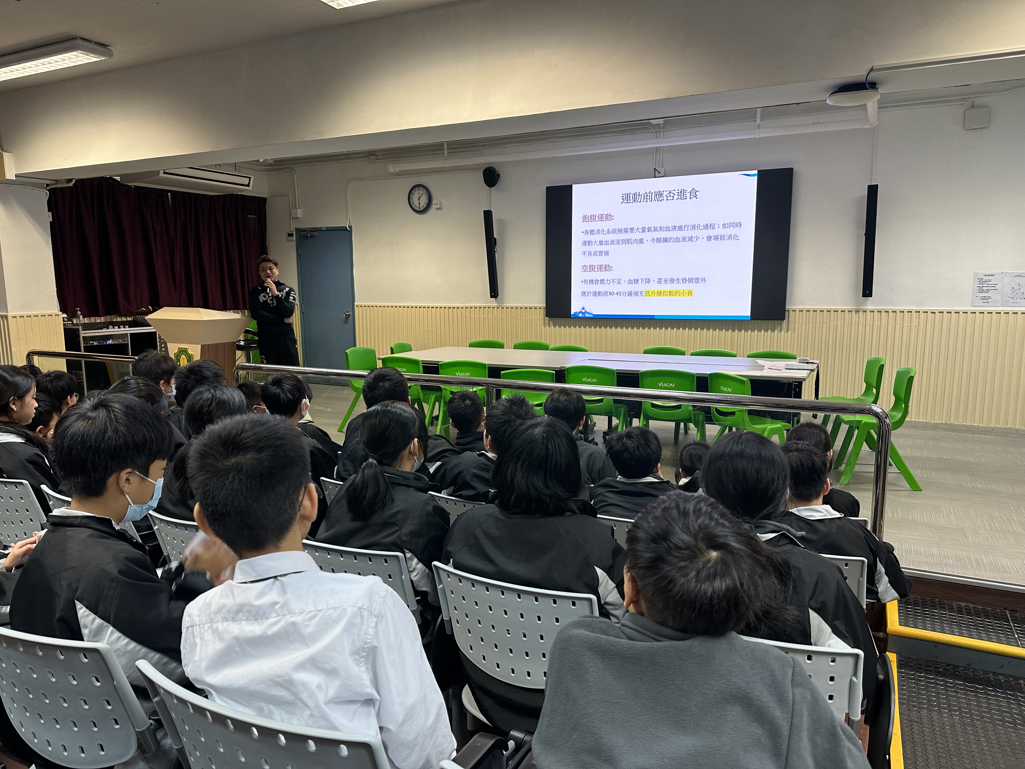 22/12/2023 為本校第十六屆環河長跑比賽,體育科特別安排此講座,並邀請「寶礦力水特」到校講解。內容主要是如何有效「補水」,這主題講座,讓同學了解進行運動時補充電解質對身體的重要,為環河長跑前上了寶貴的一課。