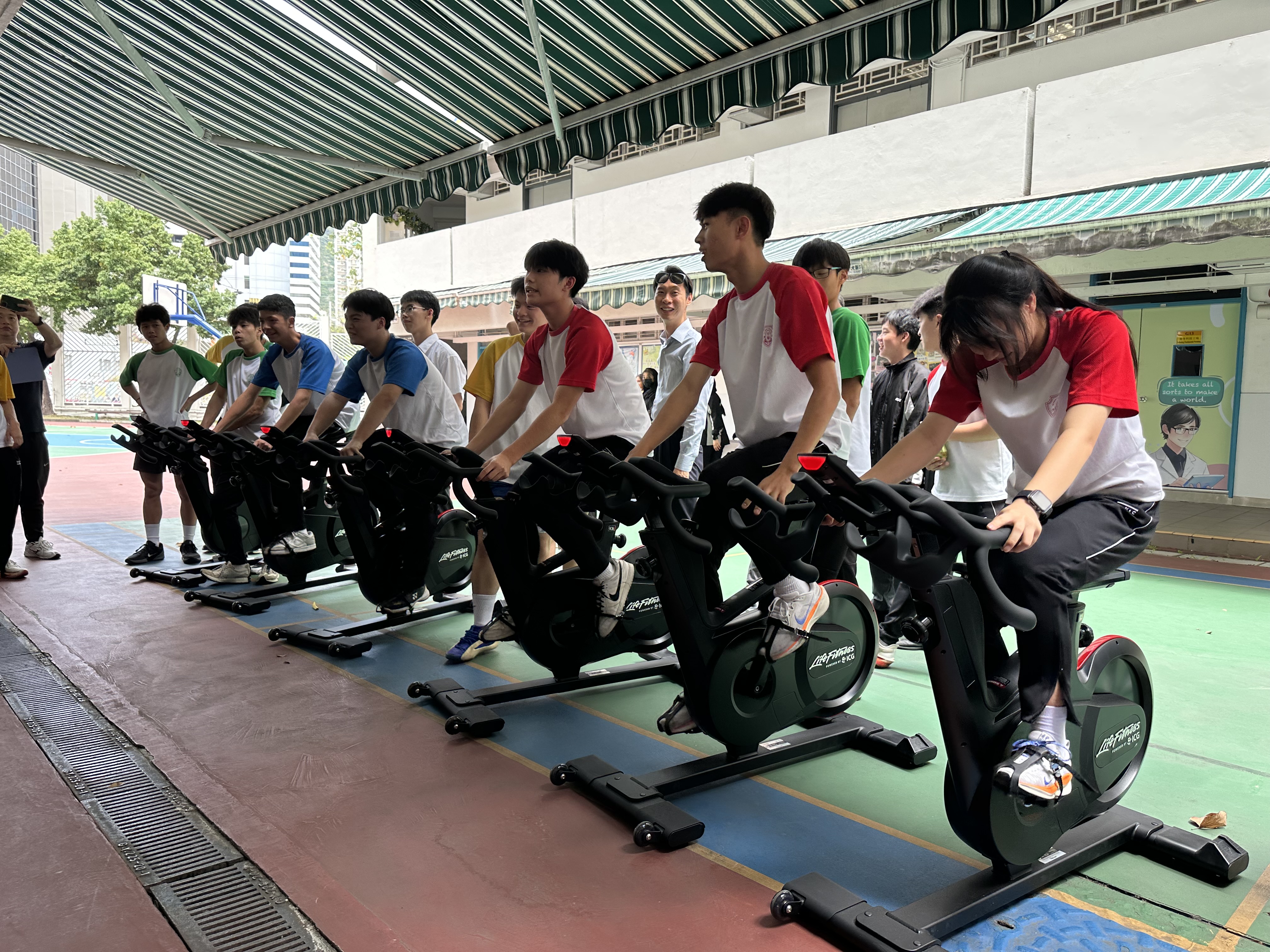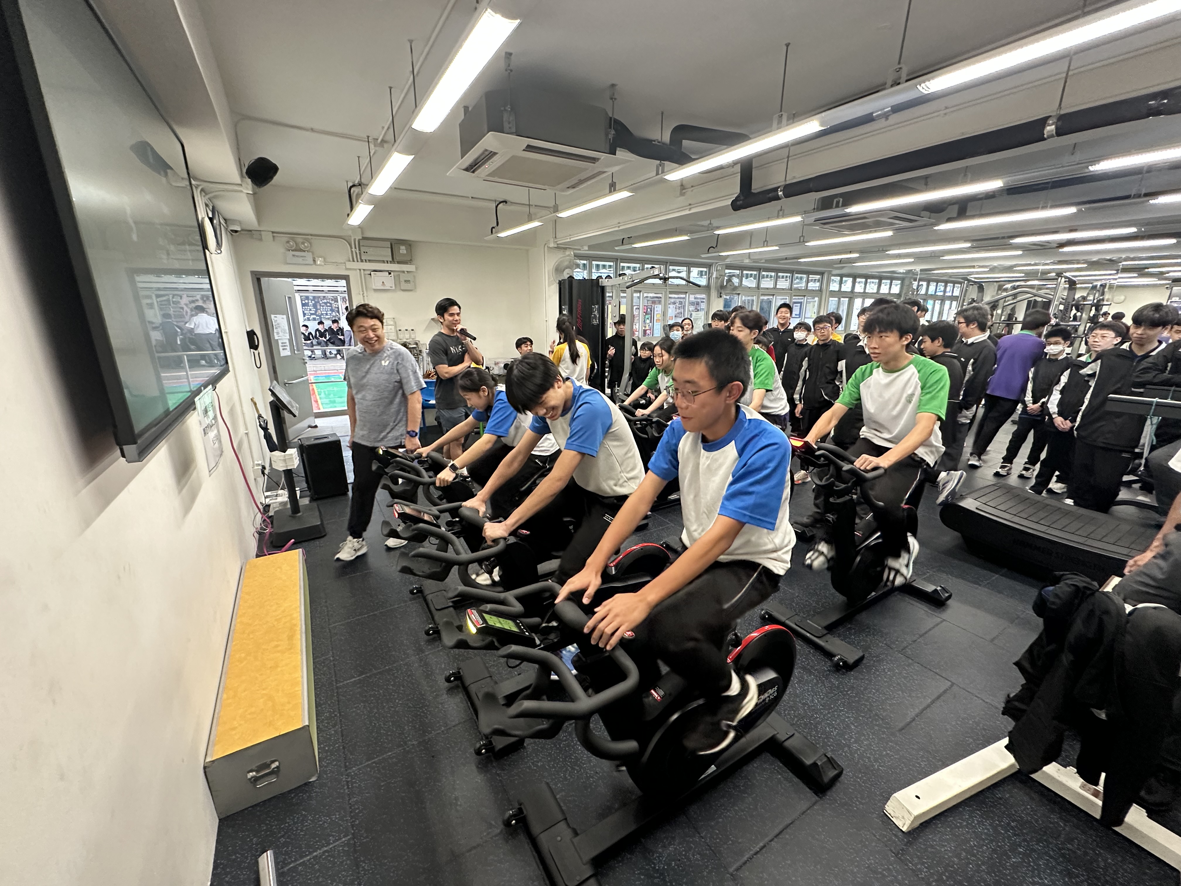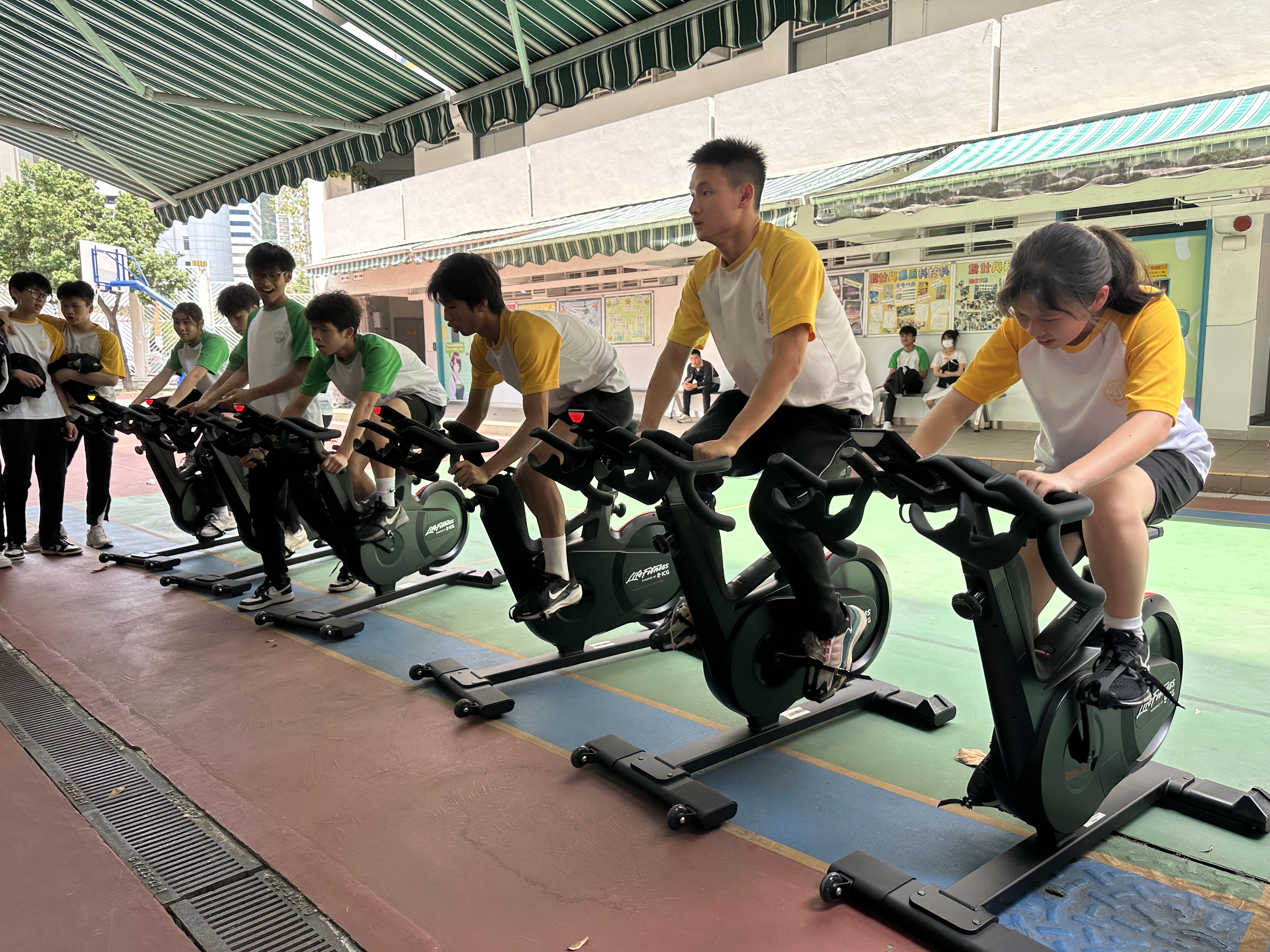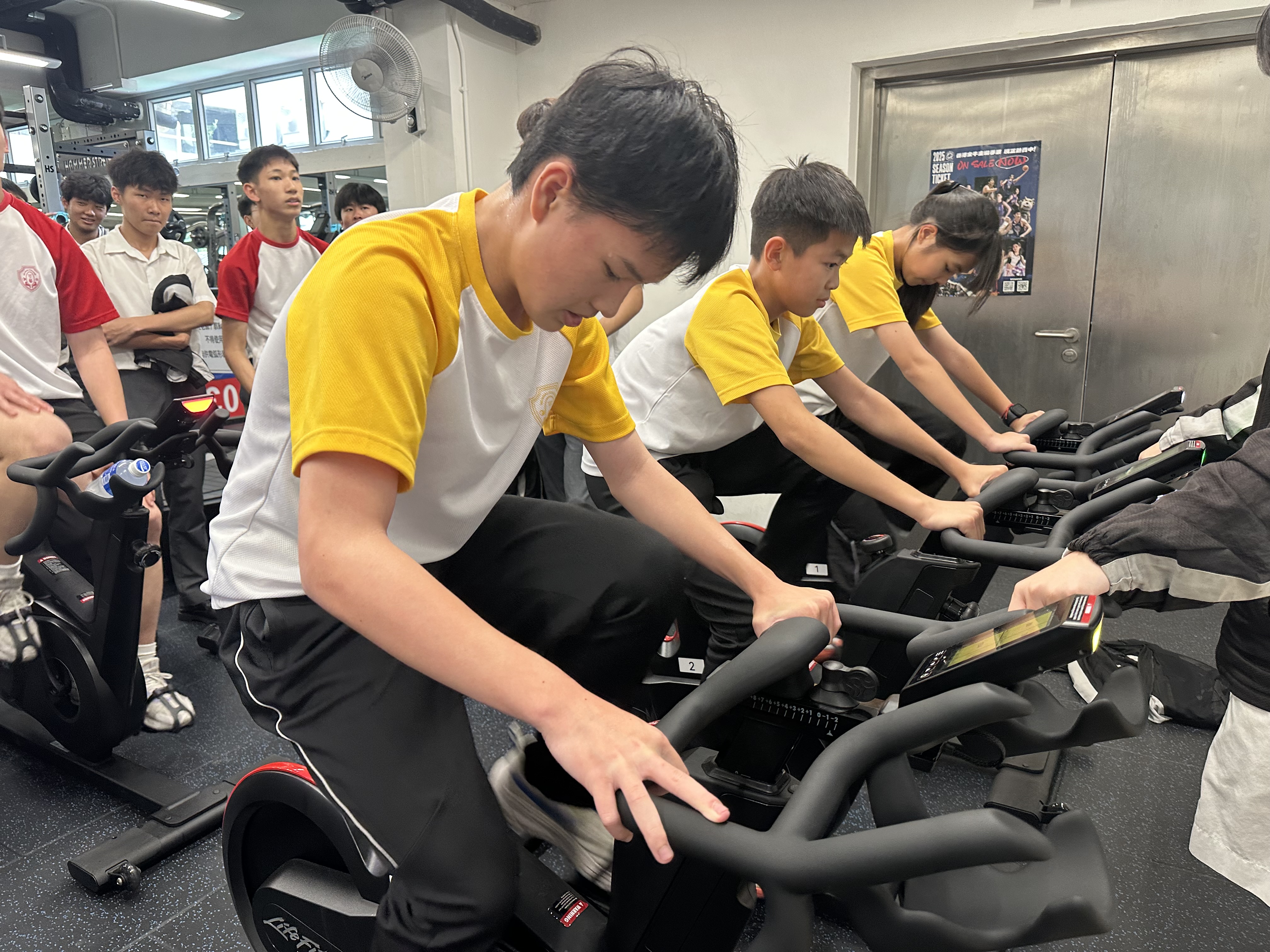 本年度新增社際電競單車比賽,將科技結合運動。比賽分初級組(中一至中三同學), 高級組(中四至中五同學),每社各派三名代表,用最快時間完成指定里數為勝出。比賽於午飯時間進行,地點於健身室外,好讓同學為自己所屬的社打氣加油。成績公佈如下: