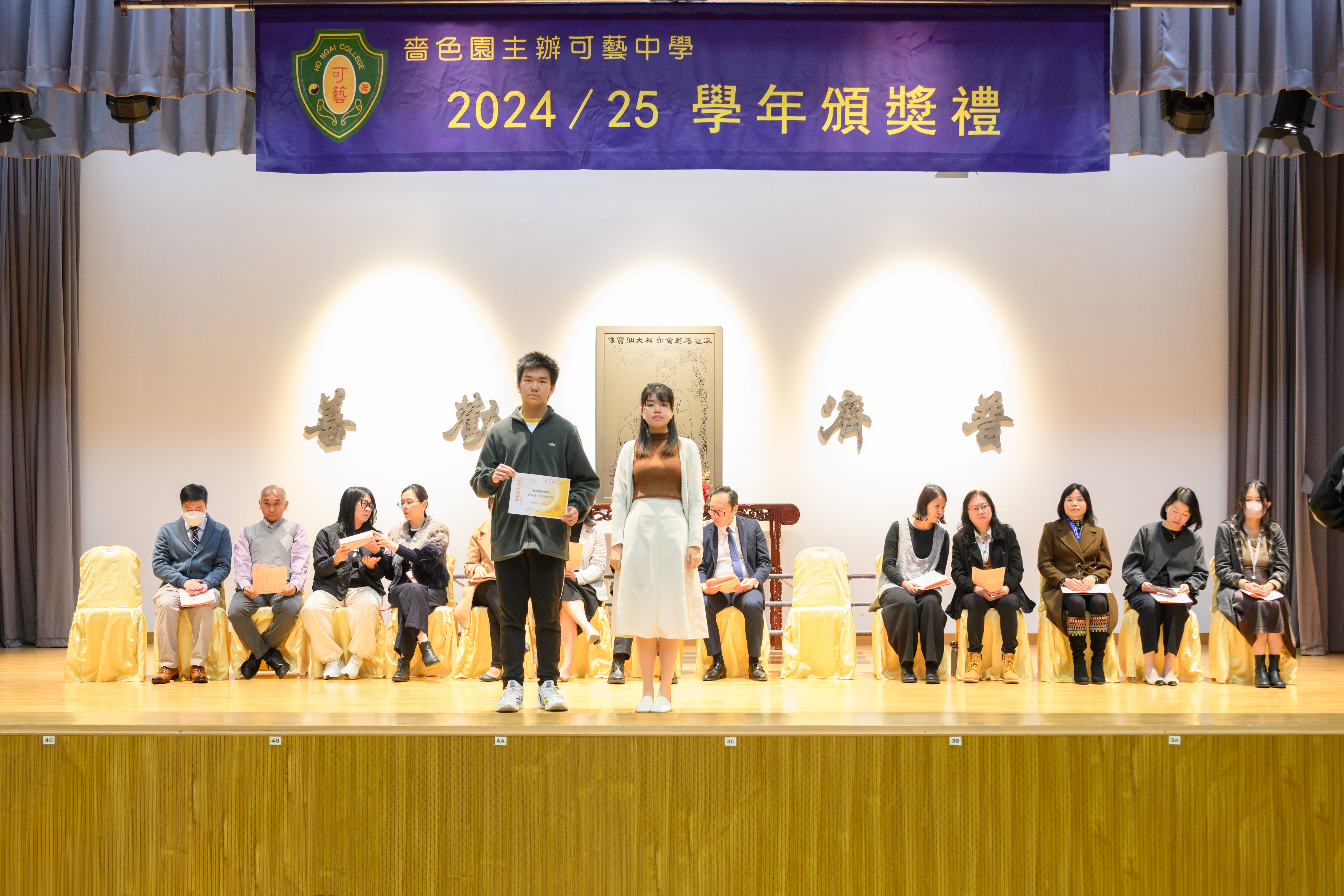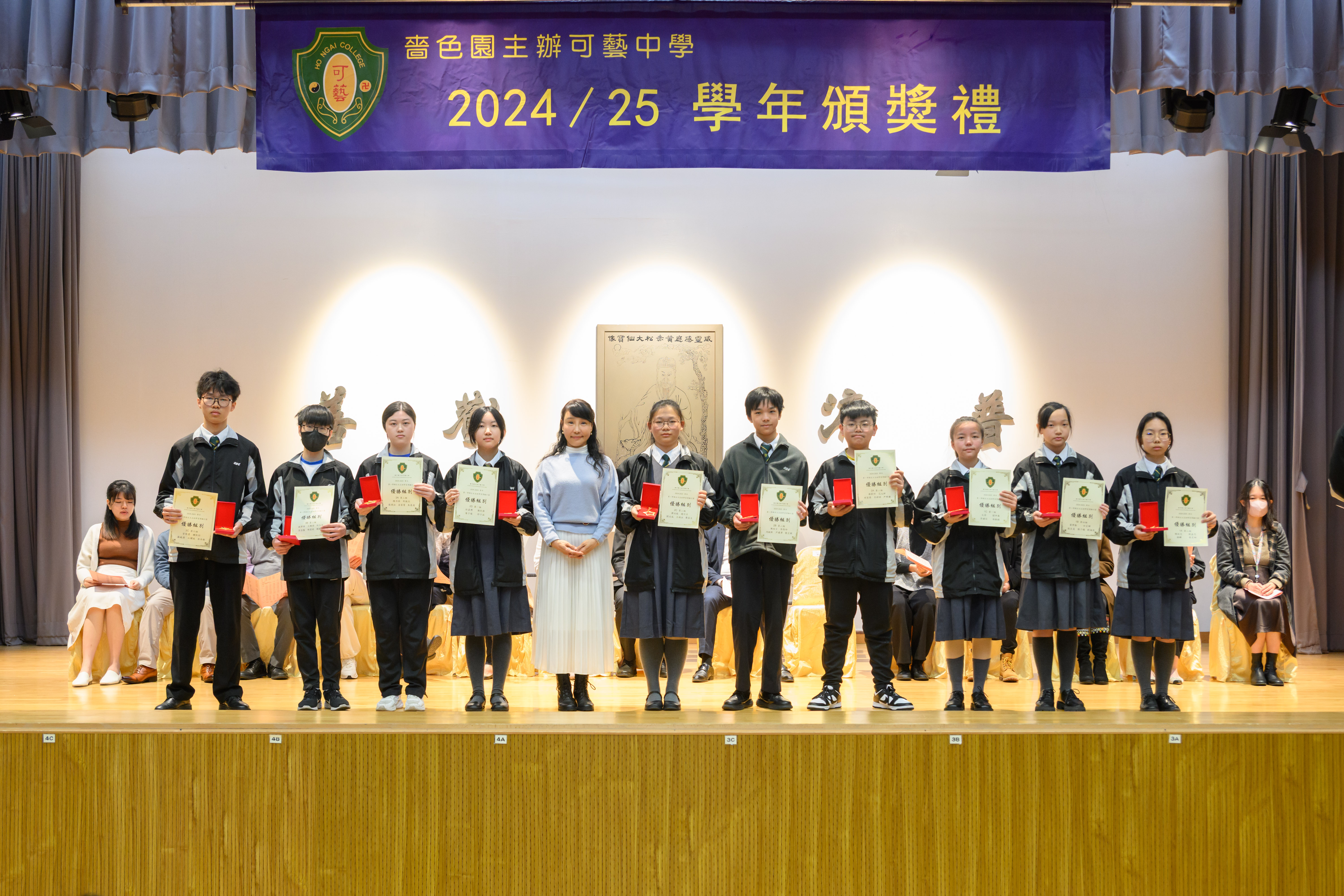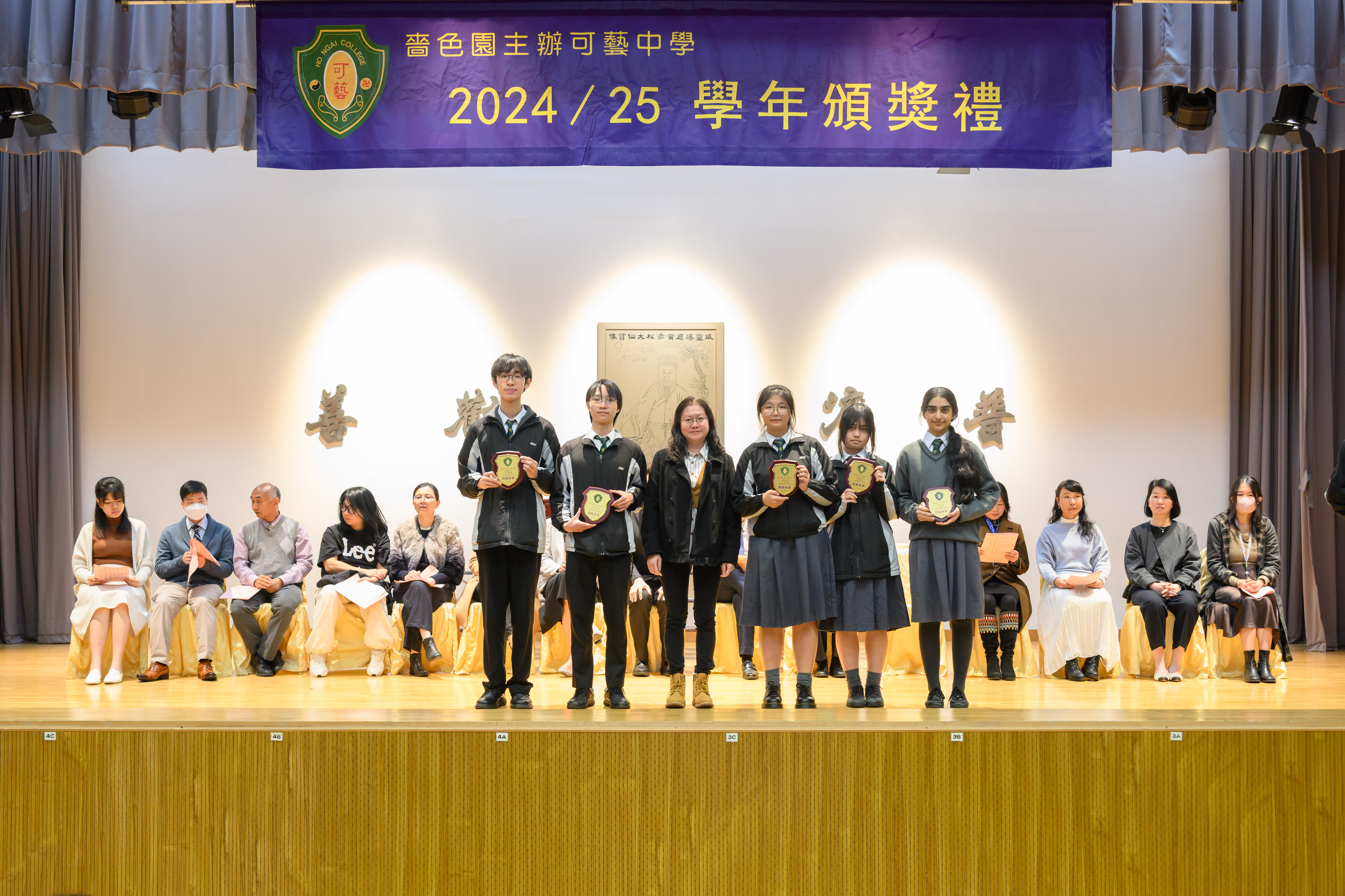 本年度第一學期頒獎典禮於2025年2月20日舉行,全校師生一起見證同學於第一學期的學習成果。校長於典禮不忘勉勵同學,希望同學能自強不息,繼續努力。期間更設向領袖致敬,眾學弟妹為即將離開校園的中六生給予最熱烈的掌聲,以感激中六學兄學姊為學校的貢獻,校長更頒發盾牌鼓勵,向中六生送上祝福。
