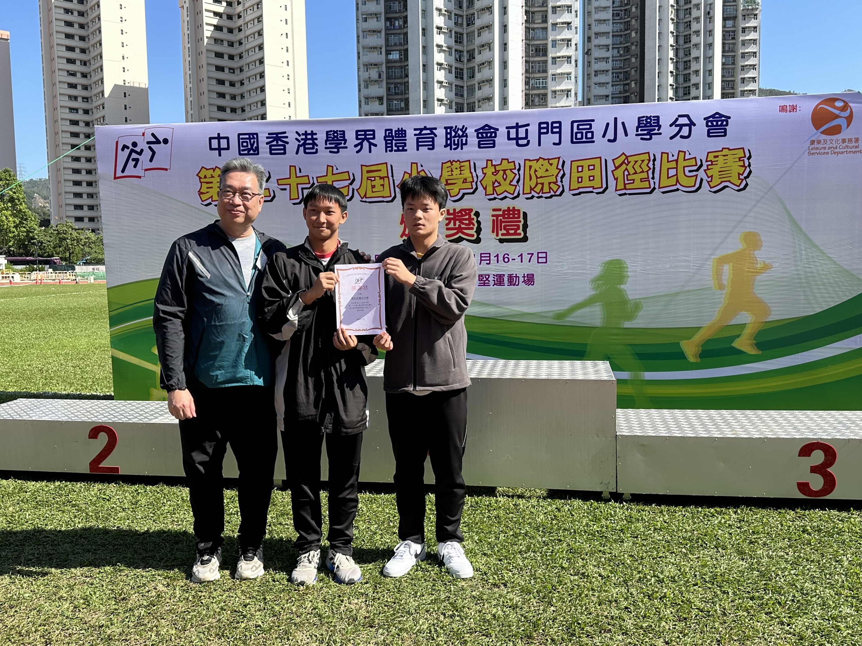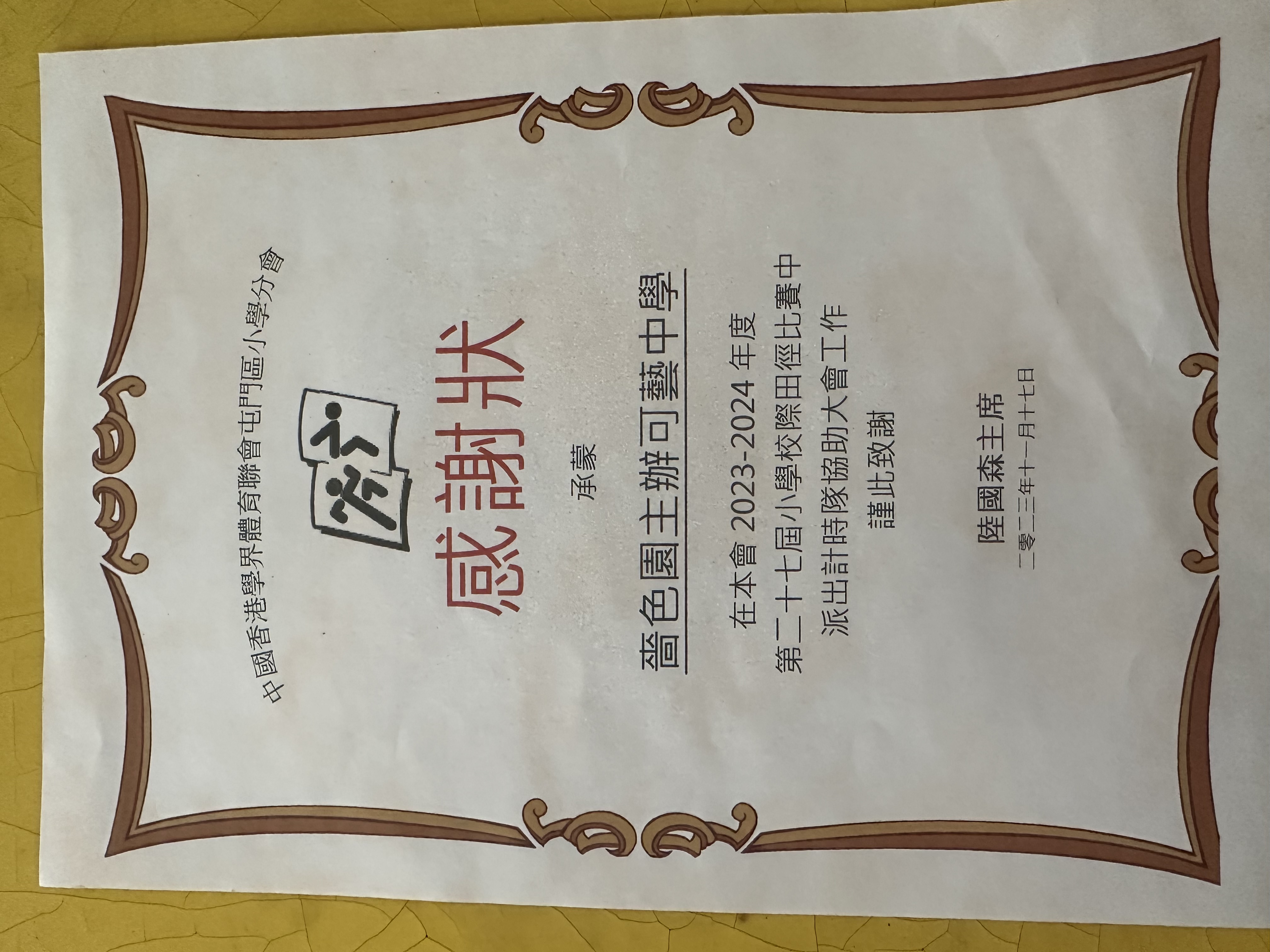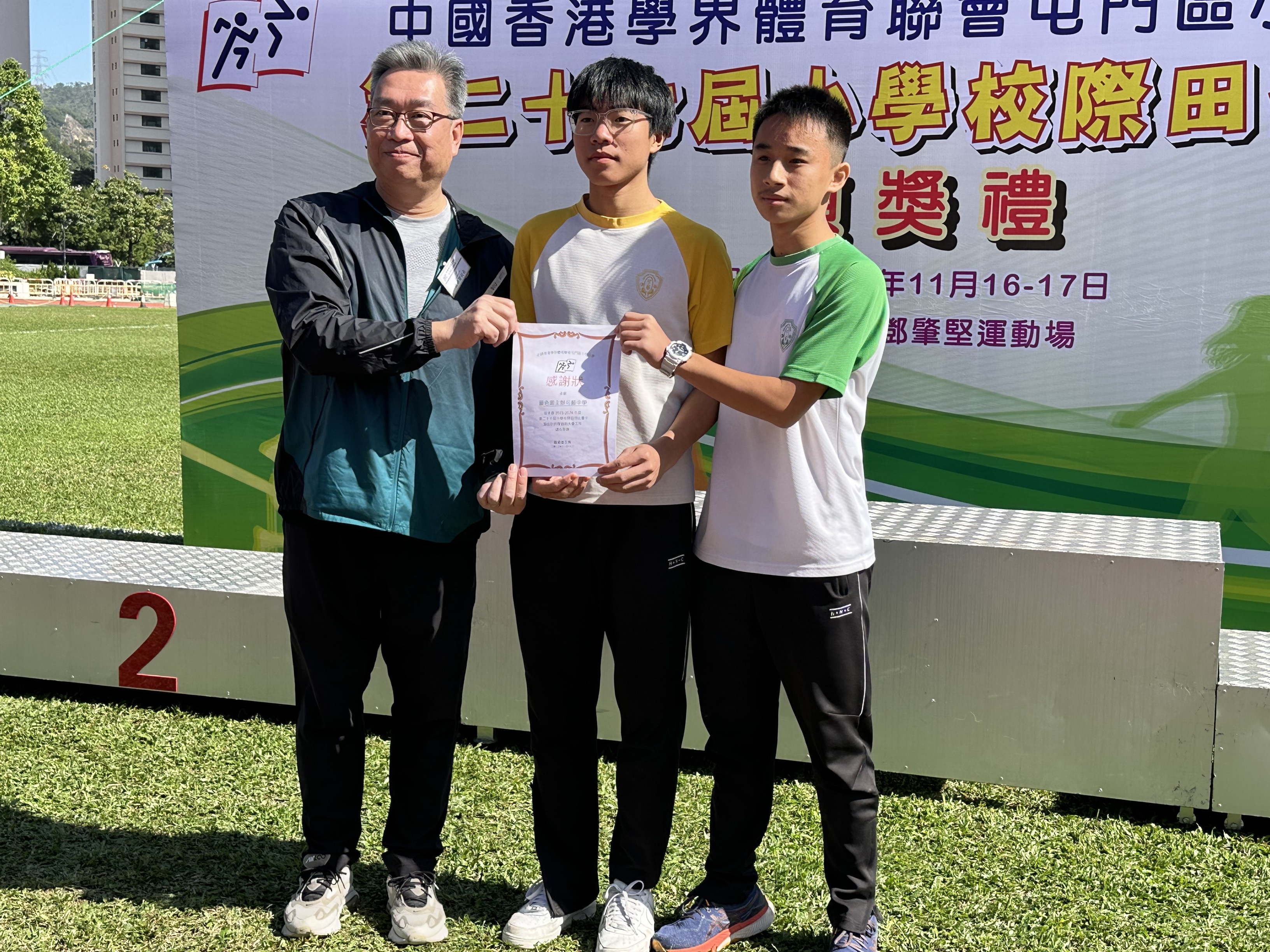 承蒙中國香港學界體育聯會屯門區小學分會邀請,我同學擔任第二十七屆小學校際田徑比賽計時員,協助大會工作。感謝中國香港學界體育聯會屯門區小學分會給予同學們服務機會,籍此加強同學對運動會的運作和了解,提升運動經歷。
