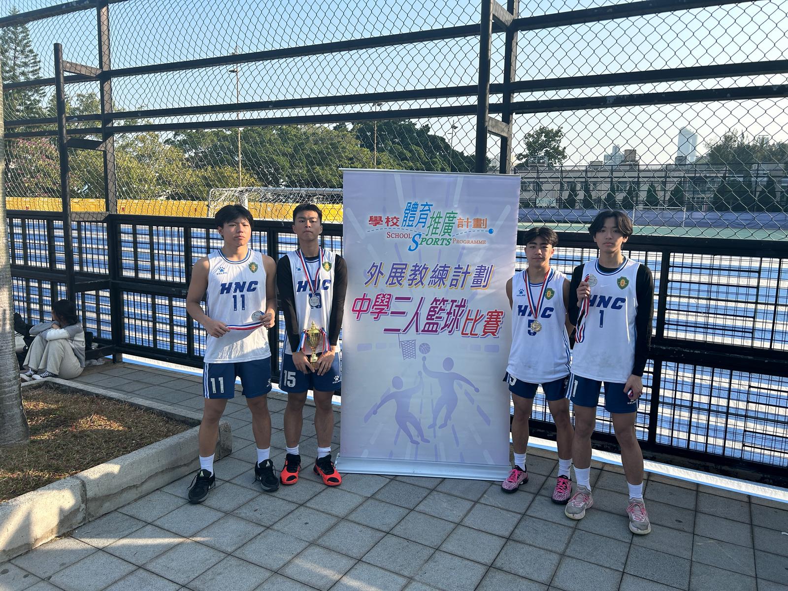 男子籃球隊參加外展教練計劃-中學三人籃球比賽,比賽合共48隊中學籃球隊參加,同學表現出色,勇奪男子組亞軍。